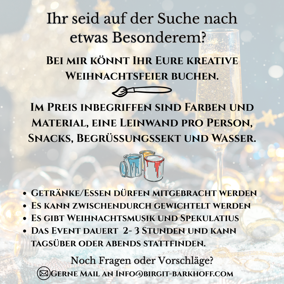 Ich freue mich auf dich – und darauf, dich beim Erschaffen deines einzigartigen Werkes zu begleiten.